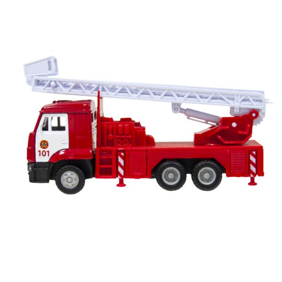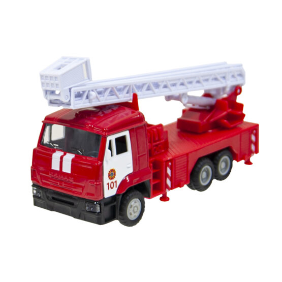 - Реалістична металева іграшка у вигляді пожежного автомобіля КАМАЗ оснащена інерційним механізмом, що дозволяє їй рухатися “своїм ходом”.