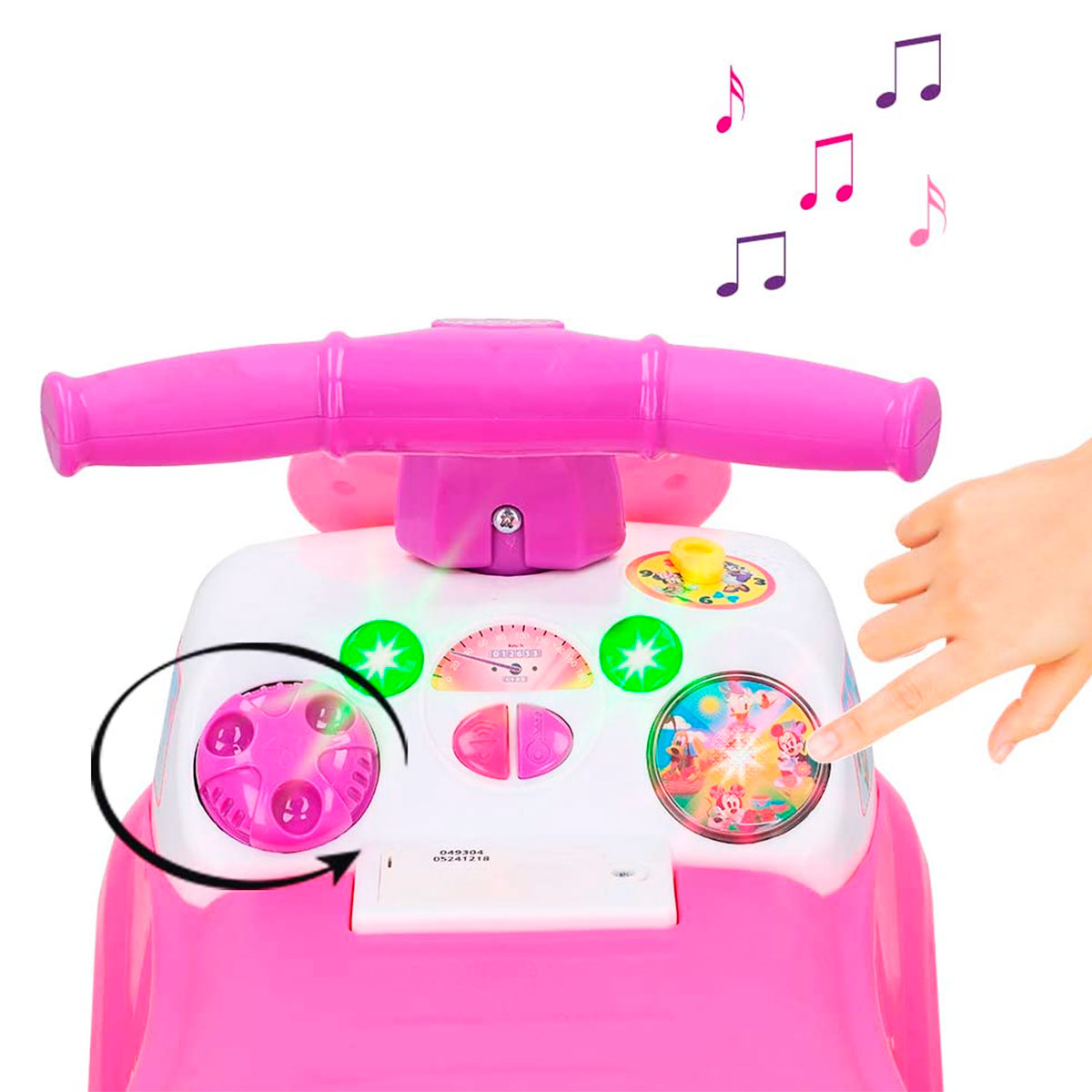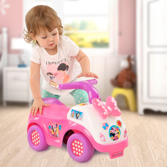 Чудомобіль-міні Мінні-Маус розважить дитину приємними мелодіями, реалістичними звуками двигуна і сигналу, миготливими вогниками поворотів.