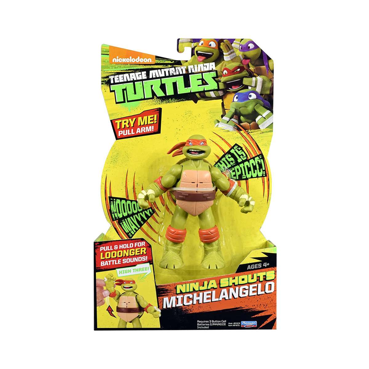 Фігурка серії “ЧЕРЕПАШКИ-НІНДЗЯ З БОЙОВИМИ ЗВУКОВИМИ ЕФЕКТАМИ: Мікеланджело” зробить гру ще більш реалістичною! Герої мультфільмів є одними з найулюбленіших іграшок для хлопчиків різного віку. Фігурки серії Черепашки-ніндзя відрізняються не тільки високою деталізацією і якістю промальовування, а й своєю функціональністю. Зберіть всіх Черепашок, і у Вас з’явиться справжня армія Ніндзя для боротьби зі злом! Фігурка серії ЧЕРЕПАШКИ-НІНДЗЯ допомагає розвинути у дитини: Розмір фігурки – 15 см. Батарейки: 3хLR44 (AG13) в комплекті. Для дітей у віці старше 3 років.