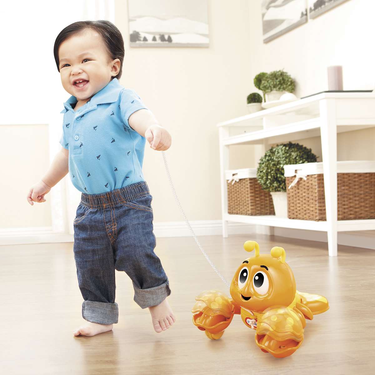 • Дитина буде розвивати координацію і рівновагу, катаючи милого лобстера за собою.