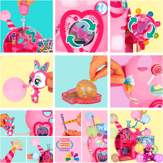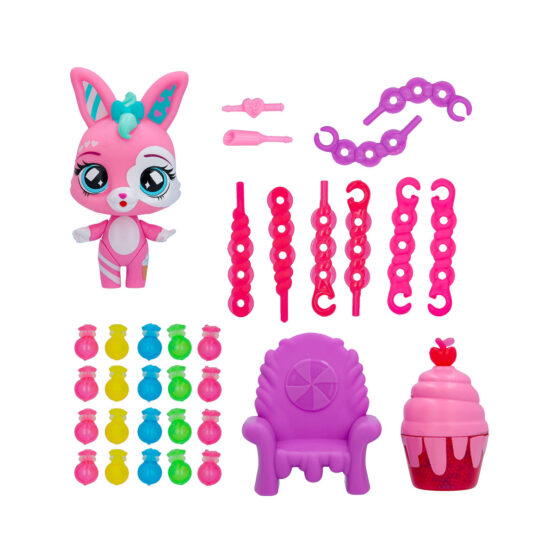 • У наборі є колекційний кролик та понад 15 різних аксесуарів: крісло, наліпки, кульки, трубочки для надування.