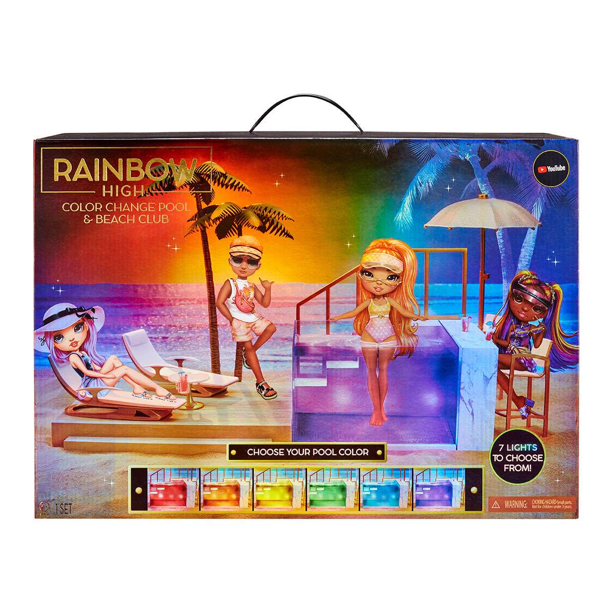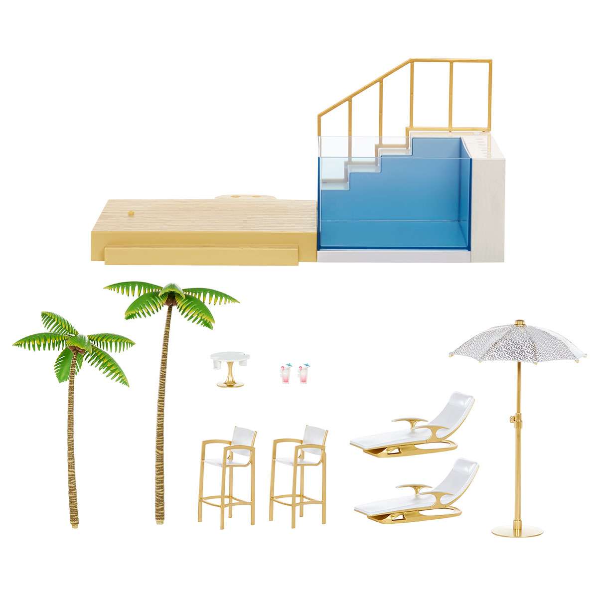 Ігровий набір для ляльок RAINBOW HIGH серії “Pacific Coast” – ВЕЧІРКА БІЛЯ БАСЕЙНУ містить все необхідне для стильного відпочинку.