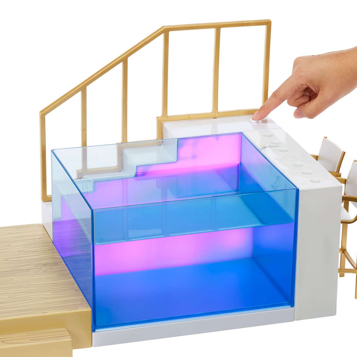 - освіжаючий басейн з підсвіткою для купання та крутих вечірок. Басейн має 7 режимів підсвітки: червоне, оранжеве, жовте, зелене, синє, фіолетове світло та режим зміни кольорів
