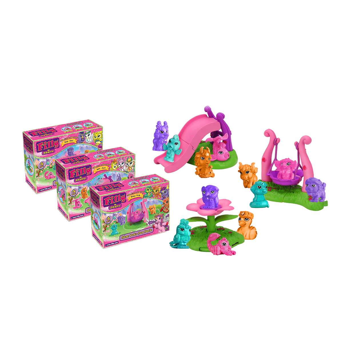 В асортименті три варіанти наборів з вихованцями та ігровим майданчиком.