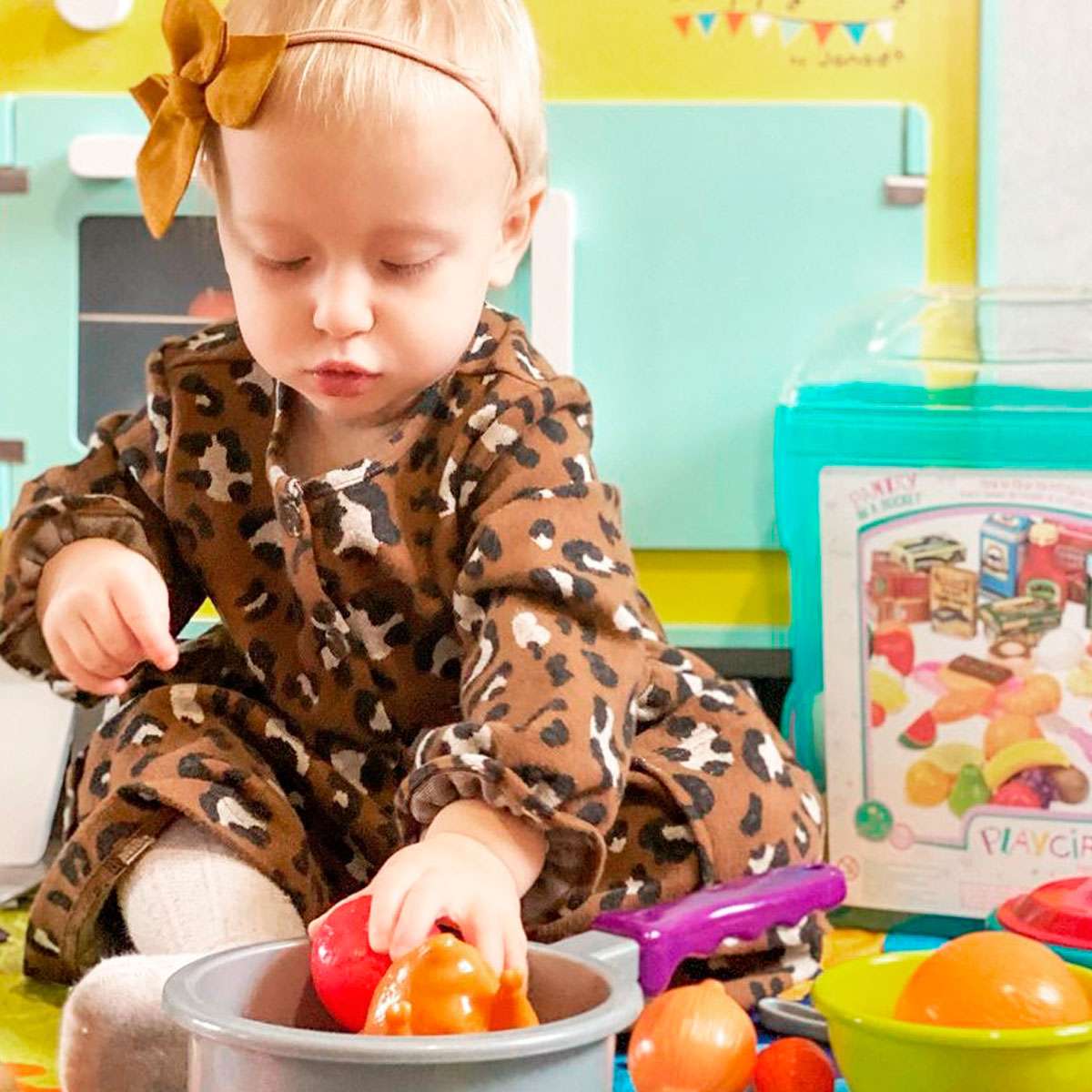 - Навчає рольовій грі і розвиває дрібну моторику, соціальні навички, навички сортування за кольором, формою і навичку вибору найкорисніших продуктів.