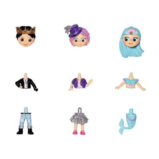 - У наборі Ви знайдете три змінних частини тіла і шарм.