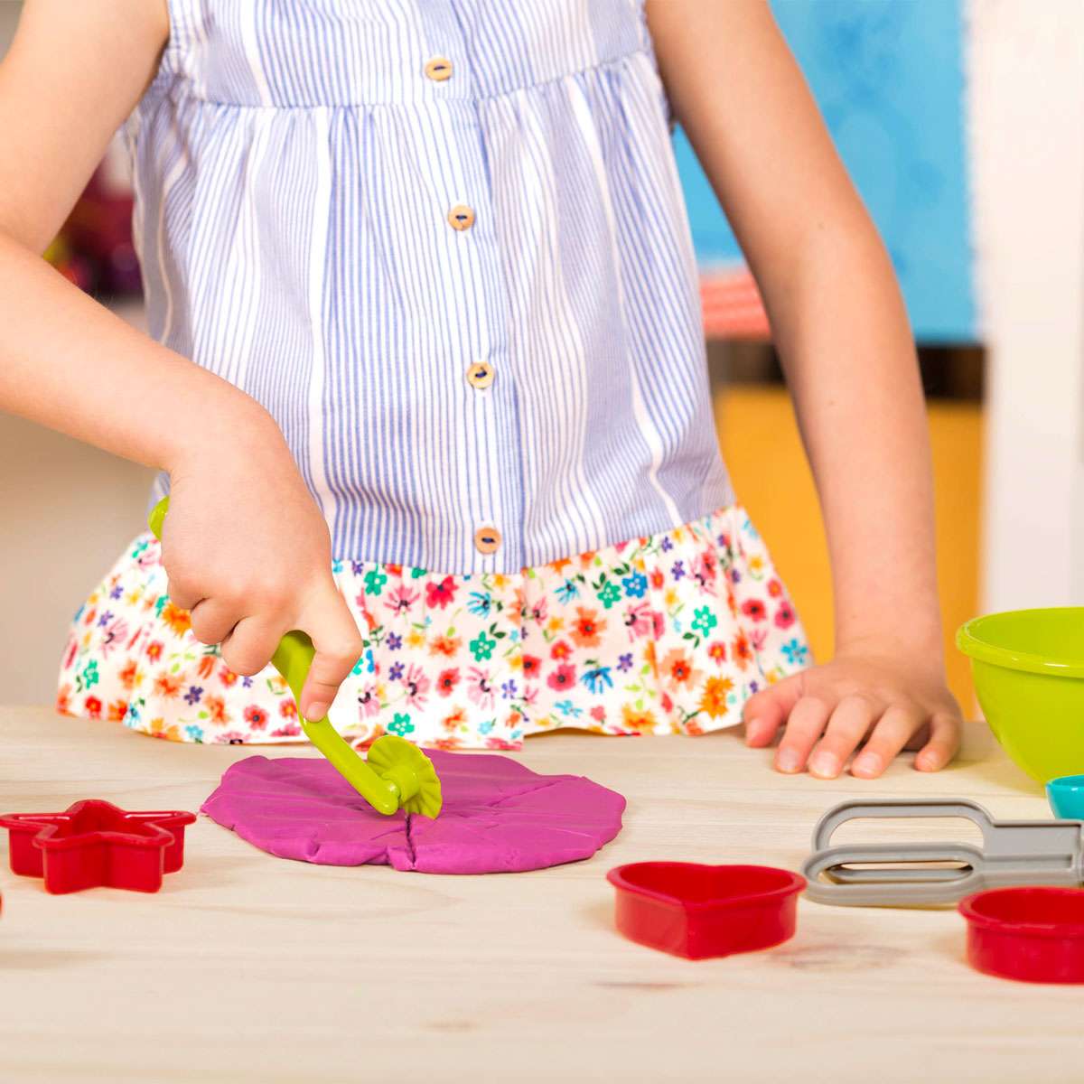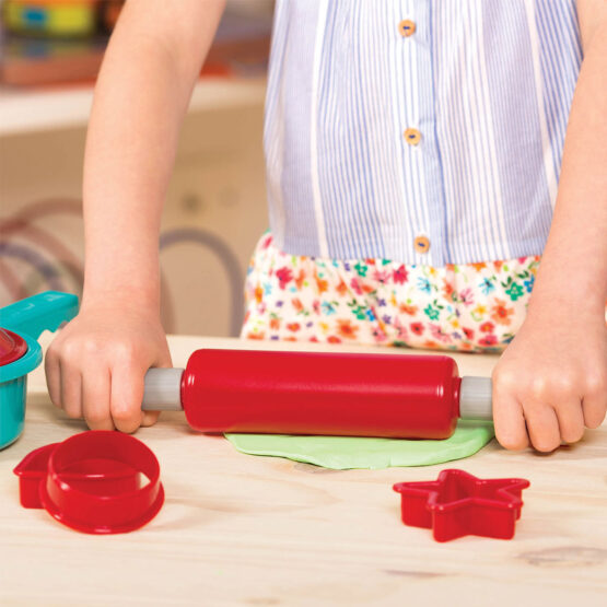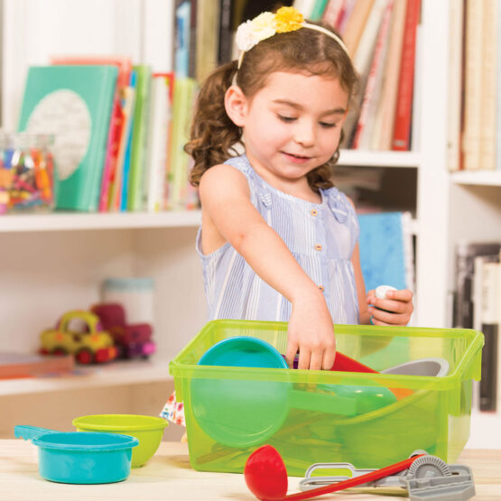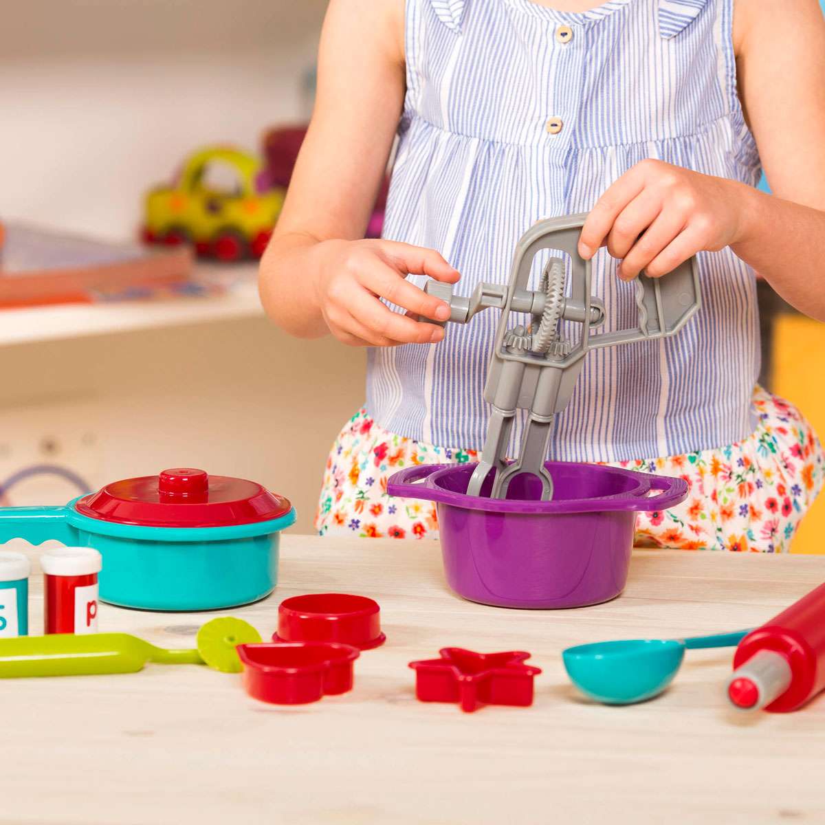 У цьому чудовому наборі є все, що необхідно маленькому кухареві для приготування будь-яких страв, які тільки можна собі уявити: каструлі, прилади та інші кухонні приналежності. До набору входить: 21 аксесуар (каструлі, сковорідка, миска, ополоник, ложки, лопатки, скалка, сільничка, перечниця, формочки, круглий «ніж» для тіста, кейс для зберігання та інші аксесуари). Розмір упаковки: 33.5 x 19.5 x 13 cm. Рекомендовано для дітей у віці старше 3 років.