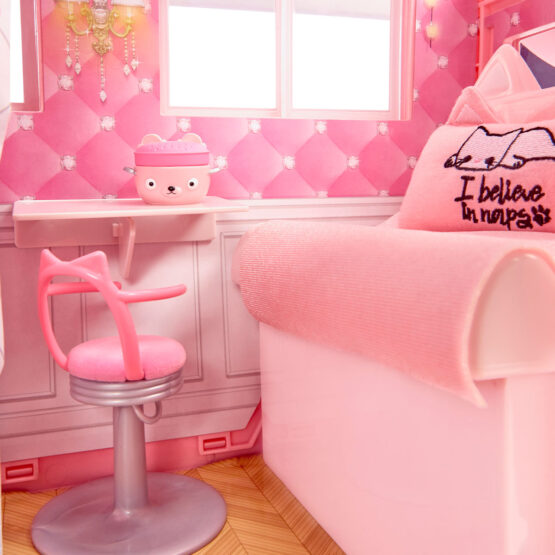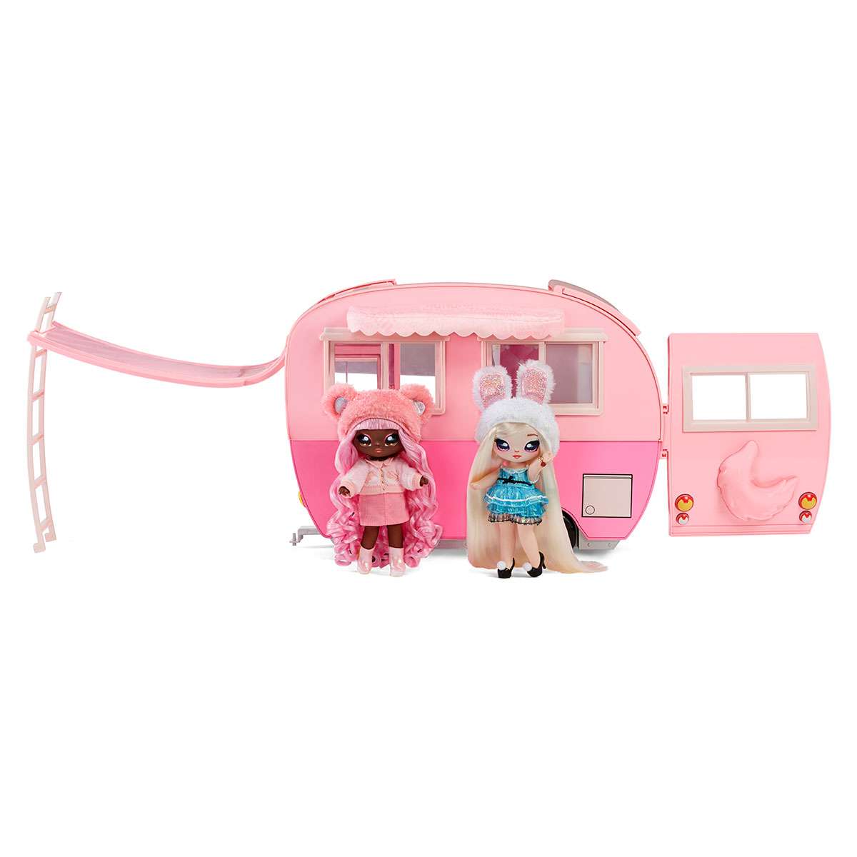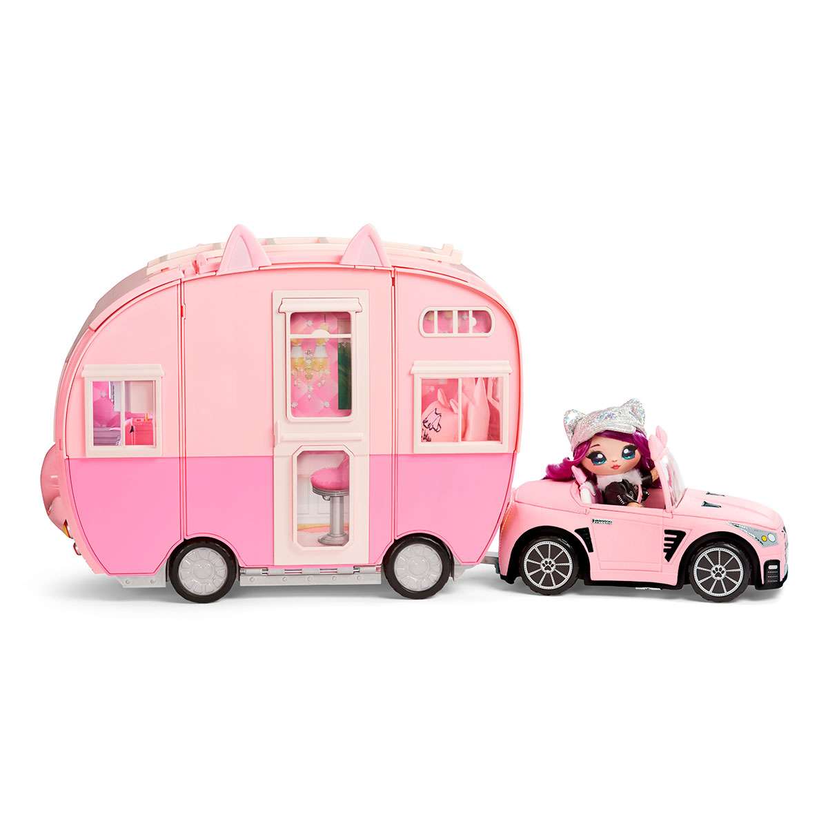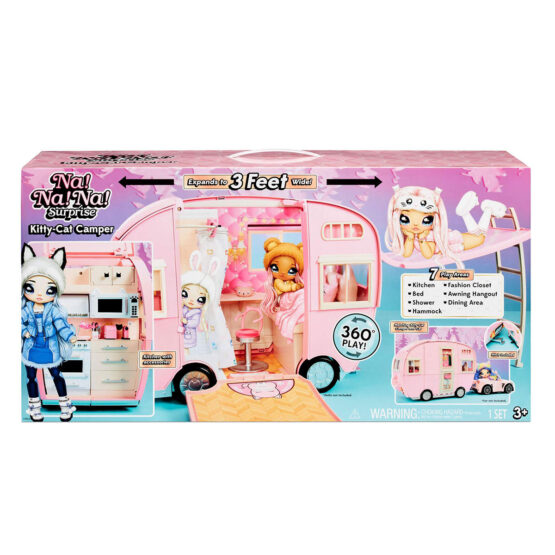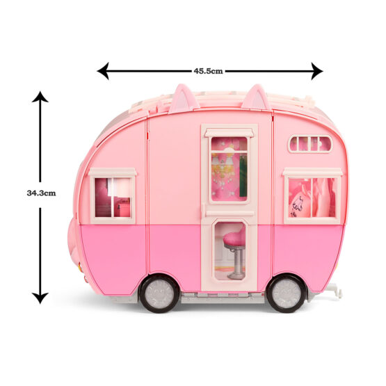Ігровий набір NA! NA! NA! SURPRISE – МЯУ-МЯУ КЕМПЕР – це наймиліший кемпер у світі! Рожевий, з вушками котика він повністю виконаний у тематиці котиків. Кемпер буде чудовим транспортом для подорожей та розваг.
