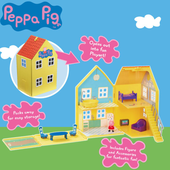 Пеппа запрошує Вас в гості, ура! Її чудовий двоповерховий будинок розкладається, і Ви опиняєтеся всередині. На Ваш вибір 4 затишні кімнати – вітальня, спальня, їдальня і ванна.