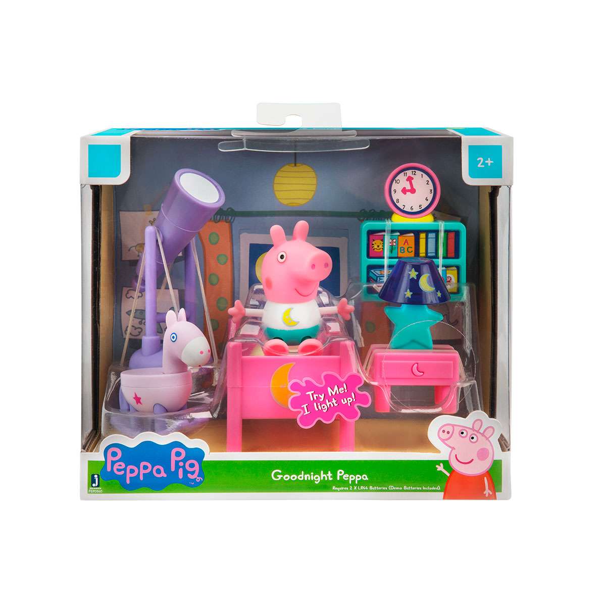 • Пеппа запрошує в гості в свою затишну спальню. В кімнаті Ви можете знайти все для гри: ліжечко Пеппи, столик з лампою, книжкову шафу, телескоп і конячку-гойдалку.