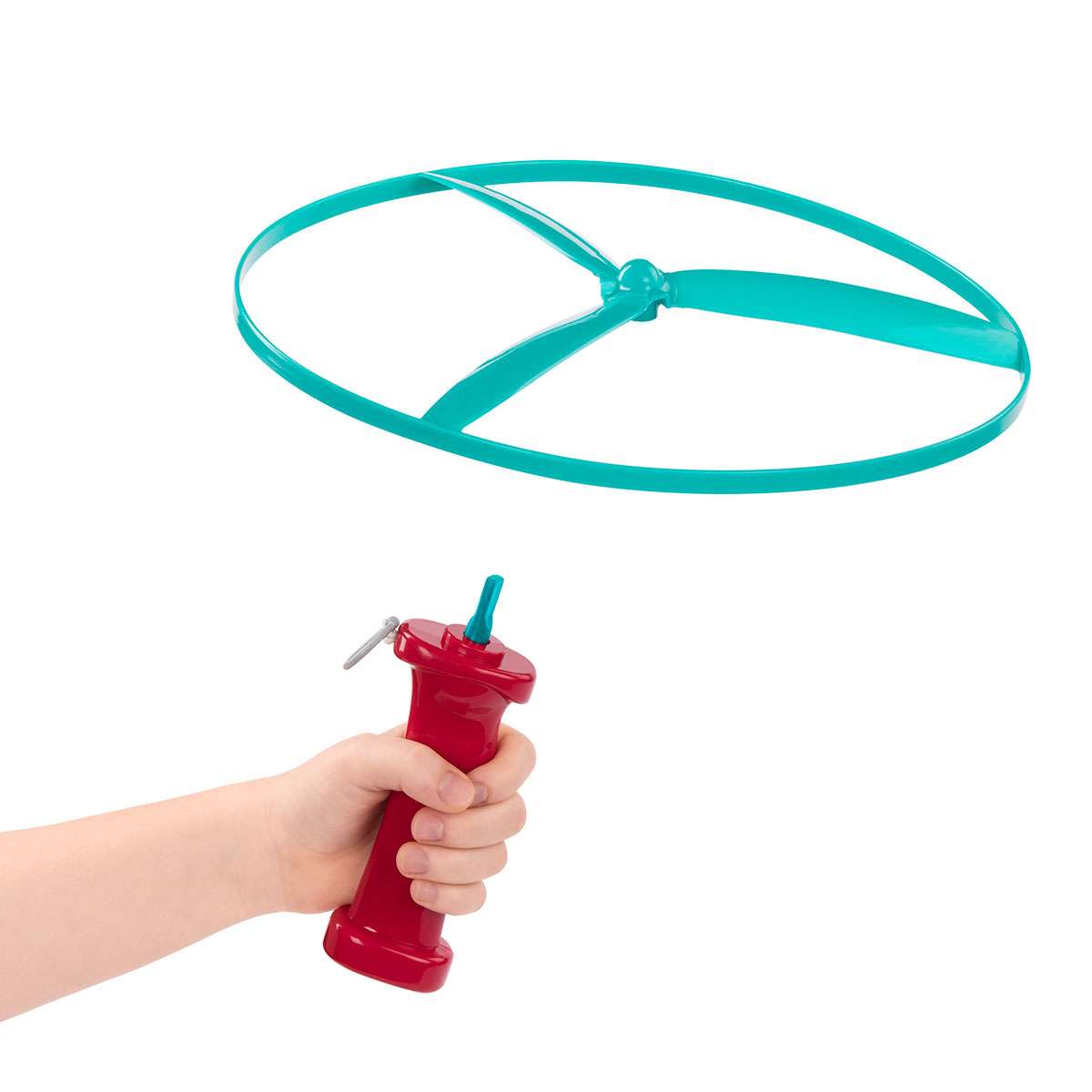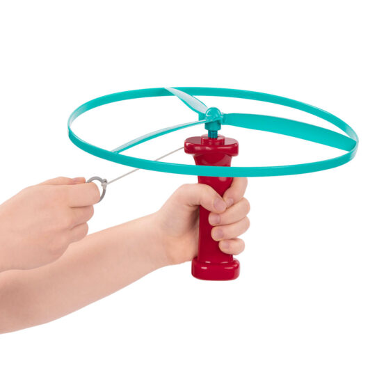 - Просто потягніть за мотузку пускового пристрою – яскравий пропелер почне обертатися і полетить високо вгору – до 15 метрів.