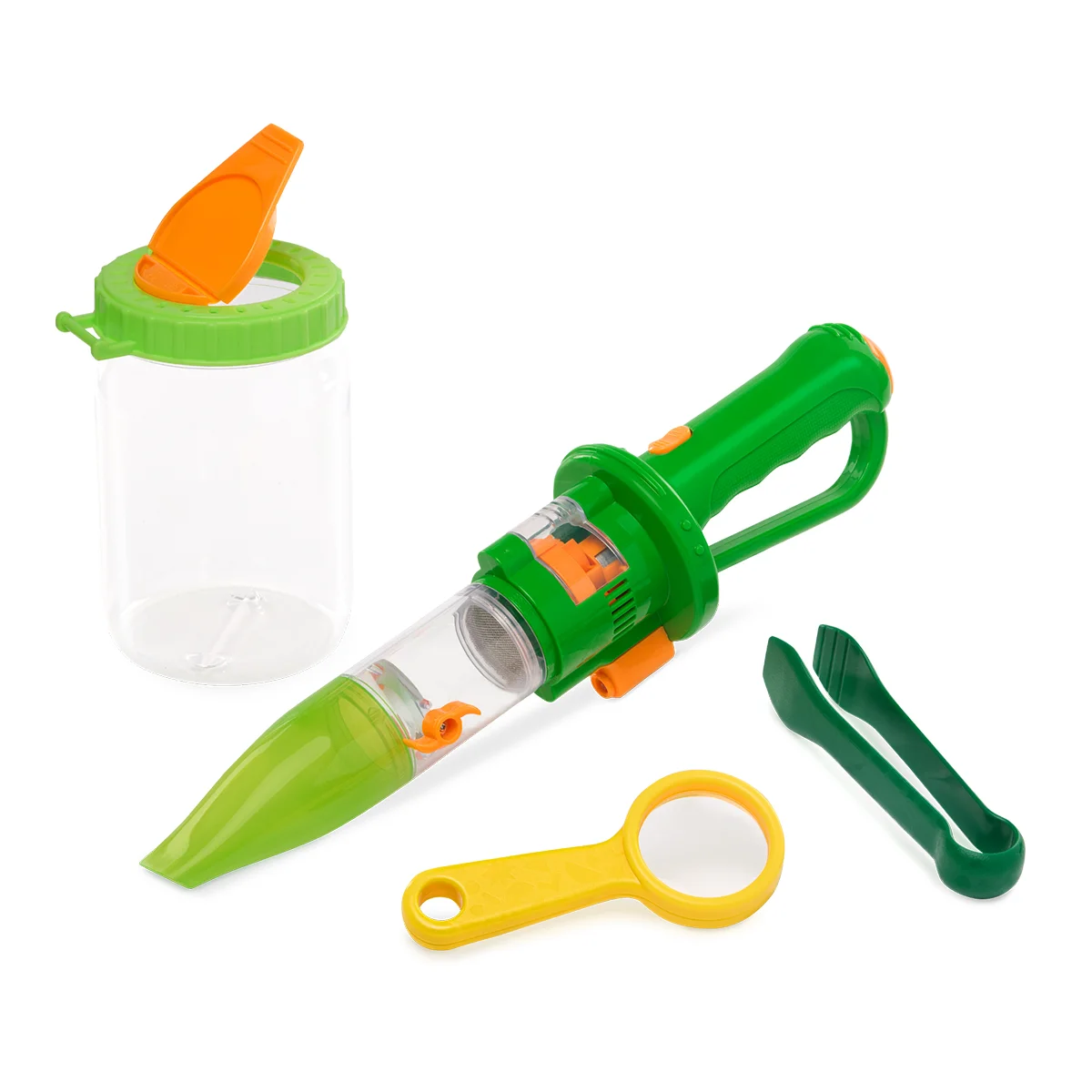 Іграшка для ловлі комах з вакуумним всмоктуванням дозволяє обережно спіймати жучка та помістити його у прозорий відсік для спостереження. Вбудована підсвітка й лупа допомагають уважно роздивитися деталі, а після гри комаху легко випустити назад у природу.