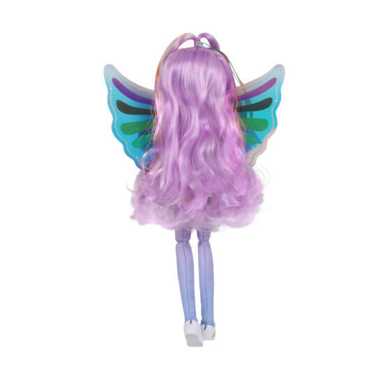 1 лялька з крилами, 1 стрічка для волосся, що знімається, 1 гребінець, 3 заколки для волосся, 1 пара взуття, що знімається, 1 спідниця, що знімається, 1 упаковка-стенд для ляльки з кишенею для зберігання секретів