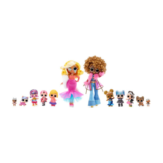 - В наборі 2 ляльки O.M.G, 6 стандартних лялечок L.O.L. SURPRISE!, 2 сестрички та 2 улюбленці.
