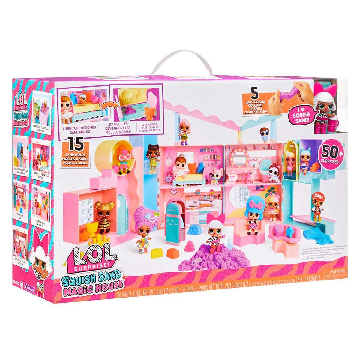 Знайомтеся з ігровим набором з лялькою L.O.L. SURPRISE! серії “Squish Sand” – ЧАРІВНИЙ ДОМ! У наборі яскравий будинок лялечки Діви з рухливими елементами, меблями та різнокольоровий кінетичний пісок. Поринайте у творчість з L.O.L. SURPRISE!