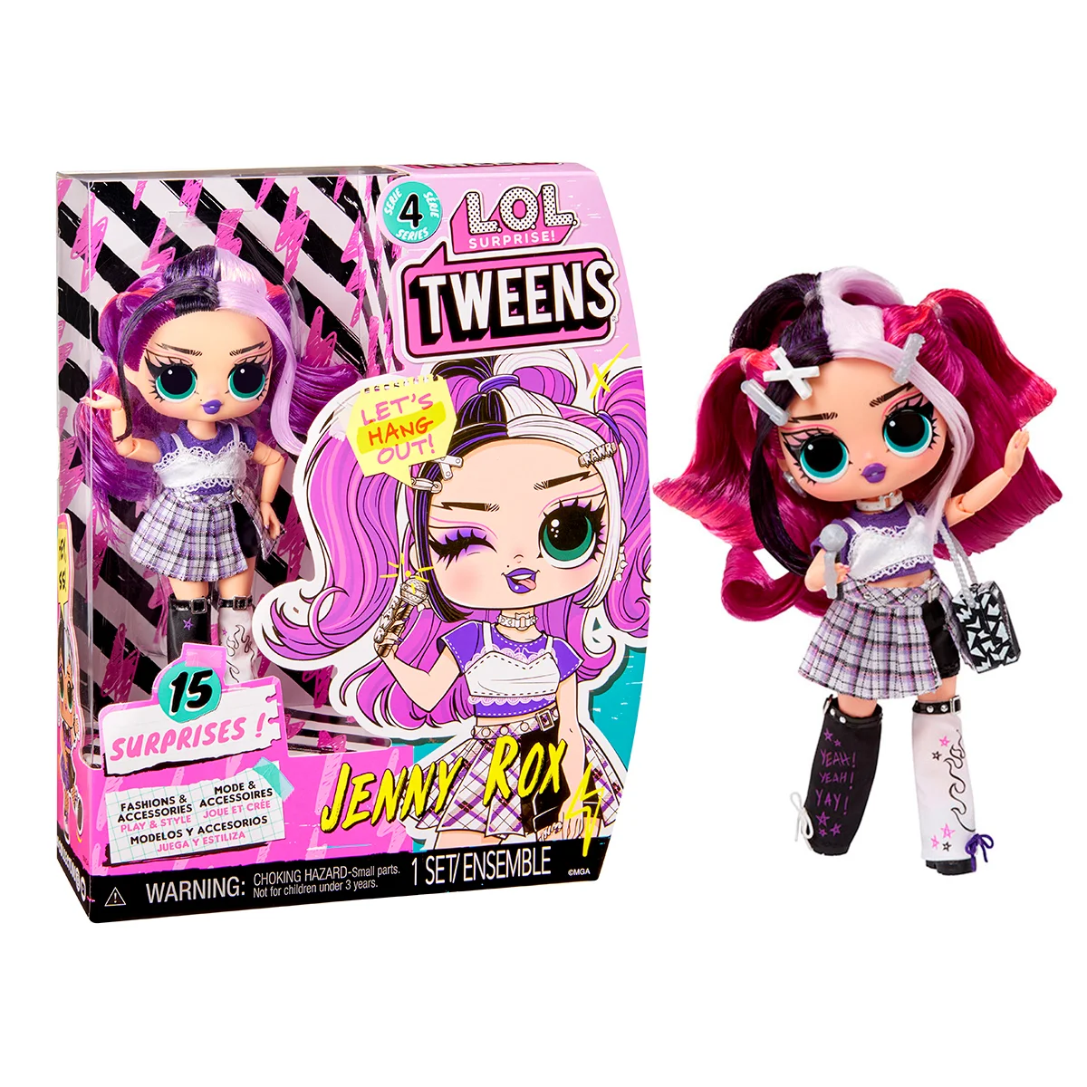 Лялька L.O.L. SURPRISE! серії “Tweens” – ДЖЕННІ РОКС – це справжня панк-рок крихітка в яскравому модному образі та 15 сюрпризів!