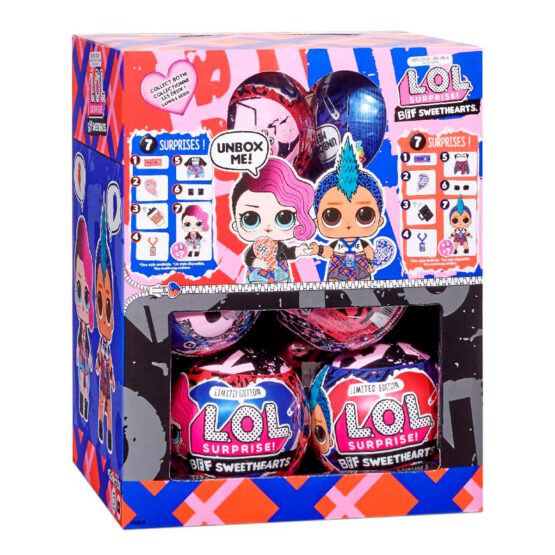Зустрічайте святкову серію “Валентинки” від бренду L.O.L. SURPRISE! Нові ексклюзивні хлопчик і дівчинка, а також неймовірно цікаве розпакування. Іграшка подарує дитині хвилю радості та веселощів, адже під кожним шаром упаковки сховався якийсь сюрприз! А всередині – колекційна лялька! Гра з лялькою L.O.L. SURPRISE! розвиває в дитині креативність, уяву і вміння грати. У кульки L.O.L. SURPRISE! 7 шарів сюрпризу: Рекомендовано для дітей старше 3 років.