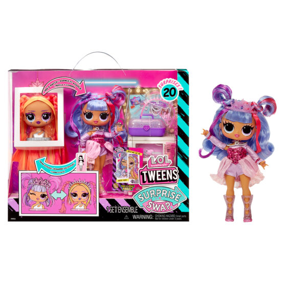 Знайомтеся з ігровим набором L.O.L. SURPRISE! Tweens серії “Surprise Swap” – БЕЙЛІ БРЕЙДС. Змінюйте зачіску вашої ляльки завдяки манекену в наборі та експериментуйте з її стилем!