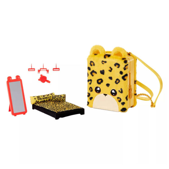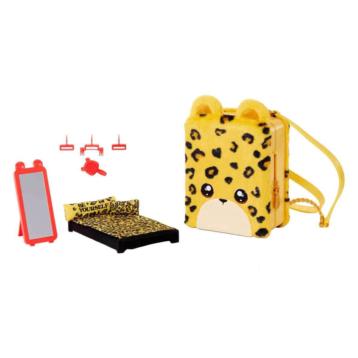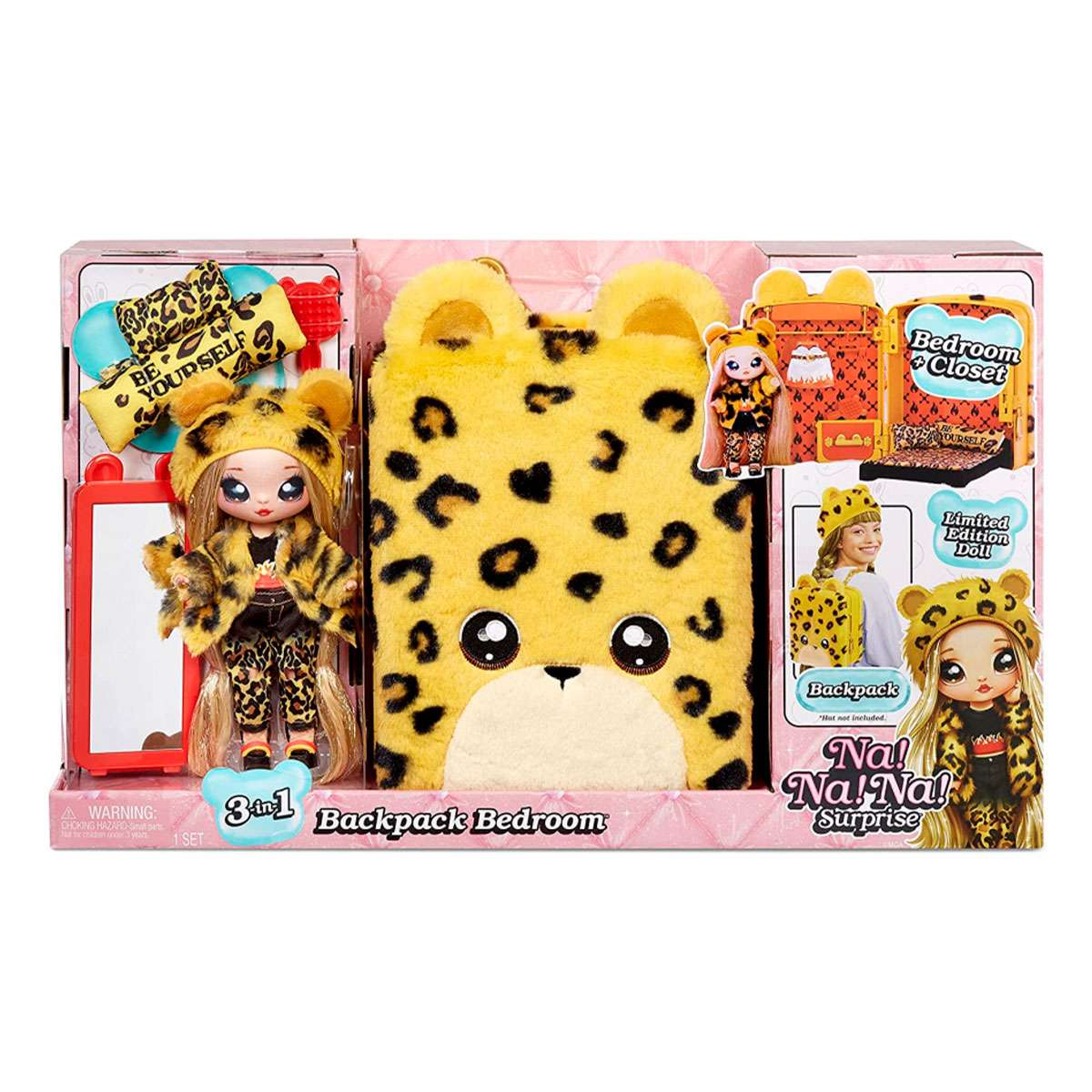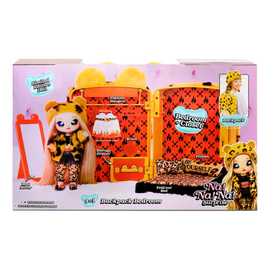 Ігровий набір з лялькою NA! NA! NA! SURPRISE 3 в 1 – РЮКЗАЧОК-СПАЛЬНЯ ДЖЕННЕЛ ЯГУАР – це милий плюшевий рюкзачок у вигляді ягуарчика, всередині якого сховалася затишна кімнатка з ексклюзивною лялечкою. Знайдіть всі сюрпризи!