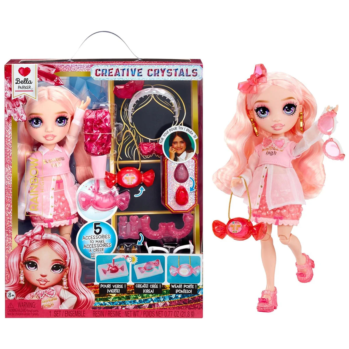 Лялька RAINBOW HIGH серії “Creative Crystals” – БЕЛЛА – стильна красуня з волоссям і одягом рожевого кольору.