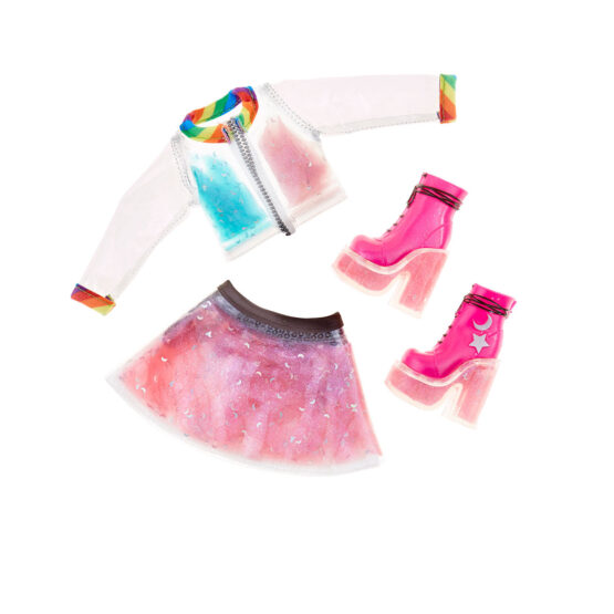 • Створіть унікальний дизайн одягу і взуття для ляльки – покладіть слайм в спеціальне відділення, щоб зробити стиль ще яскравішим!