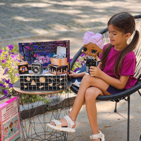 Набір з мега-лялькою L.O.L. Surprise! серії “Big B.B.Doll” – Діджей – це найбільша лялечка L.O.L., яку Ви бачили Стильна подружка тільки-но повернулася після шопінгу та поспішає показати всі свої покупки. Вона навіть може зняти модний огляд-розпаковку, адже в наборі у неї є стіл, зручне крісло і навіть задній фон! У цієї великої крихітки – справжній одяг, стильний рюкзак та модні сережки, які, за допомогою спеціальних насадок, перетворюються на кліпси для дівчинки!