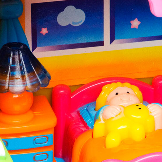 Дитина знайде в наборі фігурки людей, затишний сад і двоповерховий будиночок зі зручною спальнею, вишуканою кухнею і комфортною ванною кімнатою.