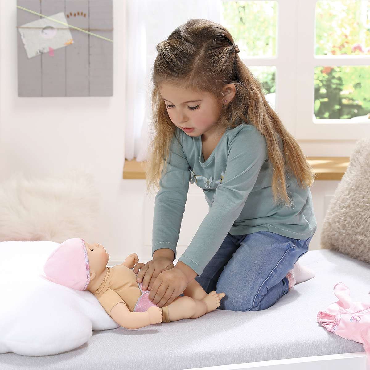 Мила крихітка Моя перша Бебі Аннабель (MY FIRST BABY ANNABELL) по-справжньому здивує маленьку маму! Адже вона взаємодіє з додатком, який допомагає доглядати за лялечкою! Коли вона буде пити або ви зміните їй підгузник – додаток підкаже вам настрій маленької Бебі Аннабель. Може вона хоче спати або її потрібно обійняти – тепер ви можете дізнатися все-все! Додаток підходить для смартфонів і планшетів iOS, Android.