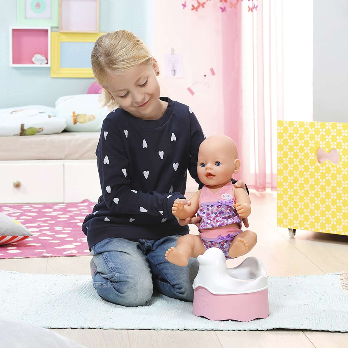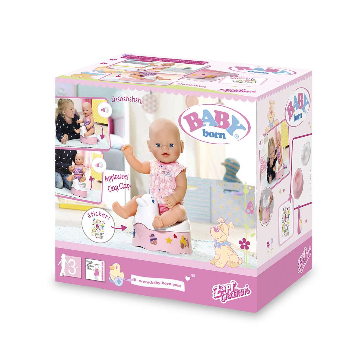 Інтерактивний горщик обов’язково сподобається вашій Бебі Борн. Він виготовлений у формі милої качечки і складається з двох частин. Верхня частина легко знімається і очищується, а нижню ви можете прикрасити за допомогою наліпок. І найцікавіше! У горщика є додаткові функції: грає музика, а ще ви можете почути оплески! Іграшка виготовлена ??з високоякісних матеріалів.