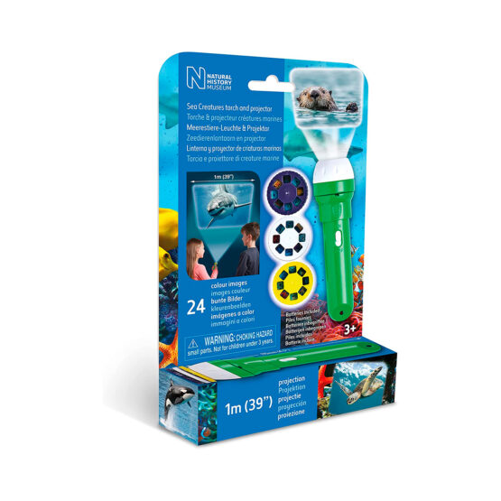 - У комплекті з ліхтариком є 3 диски з кольоровими зображеннями 24 різних підводних тваринок.