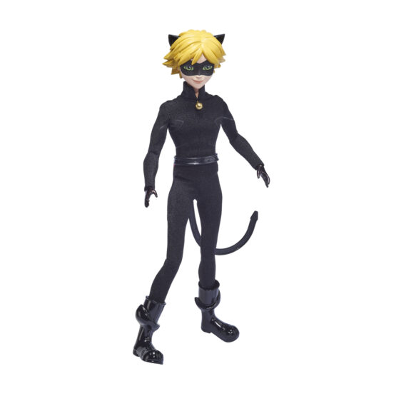 Супер-Кіт тепер в новому форматі: висота ляльки – 26 см, тканинний знімний чорний костюм, знімні черевики, маска (намальована, незнімна), 13 точок артикуляції, а в наборі є телефон для зв’язку з Леді Баг. Тепер гра виходить на новий рівень!