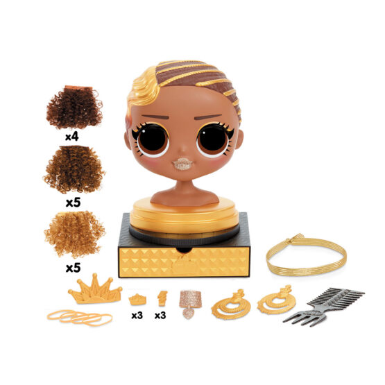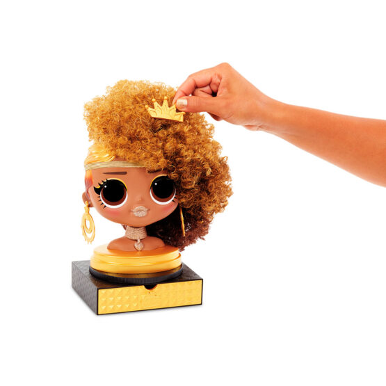 Створюйте свої зачіски для ляльки-манекена L.O.L. Surprise! серії “O.M.G.”, змінюйте образи та стилі – це так весело! У Королеви Бджілки чудові локони золотого та коричневого кольору. Підбирайте зачіску, спробуйте безліч стилів, доповнюйте аксесуарами знову і знову!