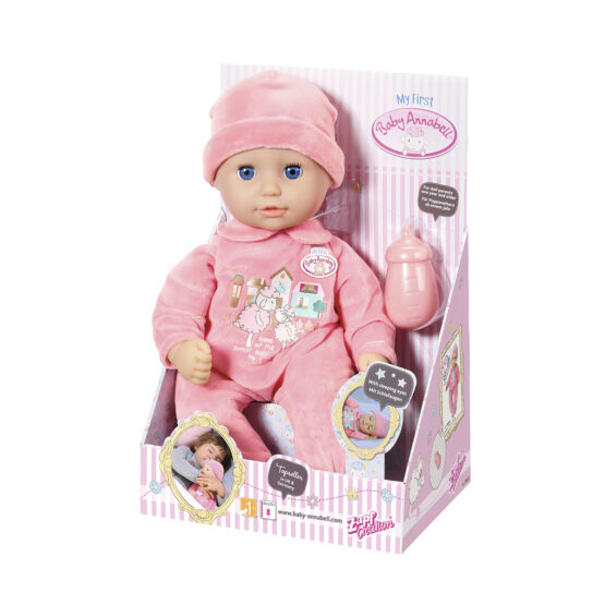 М’яконабивна лялька My First Беби Аннабель, виготовлена з неймовірно м’яких матеріалів і наповнювача, створена спеціально для найменших. Її приємно обіймати, колисати і вкладати спати поруч із собою. Лялька одягнена в красиві повзунки, які легко надягати і знімати. Якщо крихітка зголодніє, ви можете “погодувати” її за допомогою пляшечки, яка входить до комплекту. А якщо захоче спати – покладіть на спинку, і вона закриє очі. Функціональність: У наборі: Гра з такою лялькою буде розвивати в дитині уяву, вміння грати і турботу.