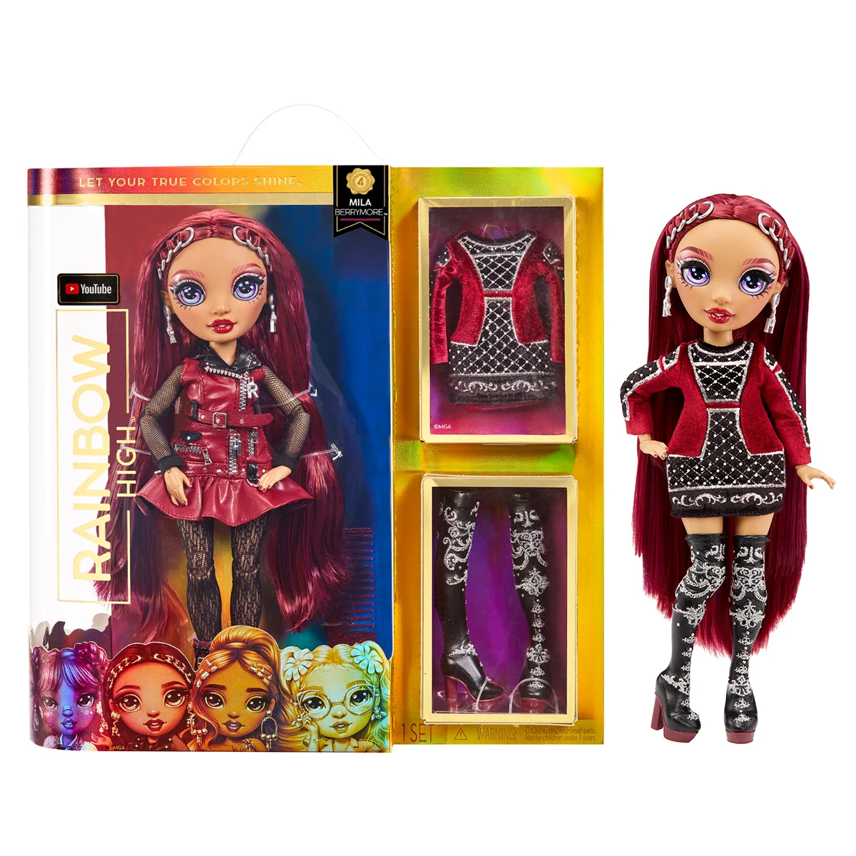 Лялька RAINBOW HIGH S4 – МІЛА БЕРРІМОР – чарівна красуня з волоссям та одягом кольору бургунді.