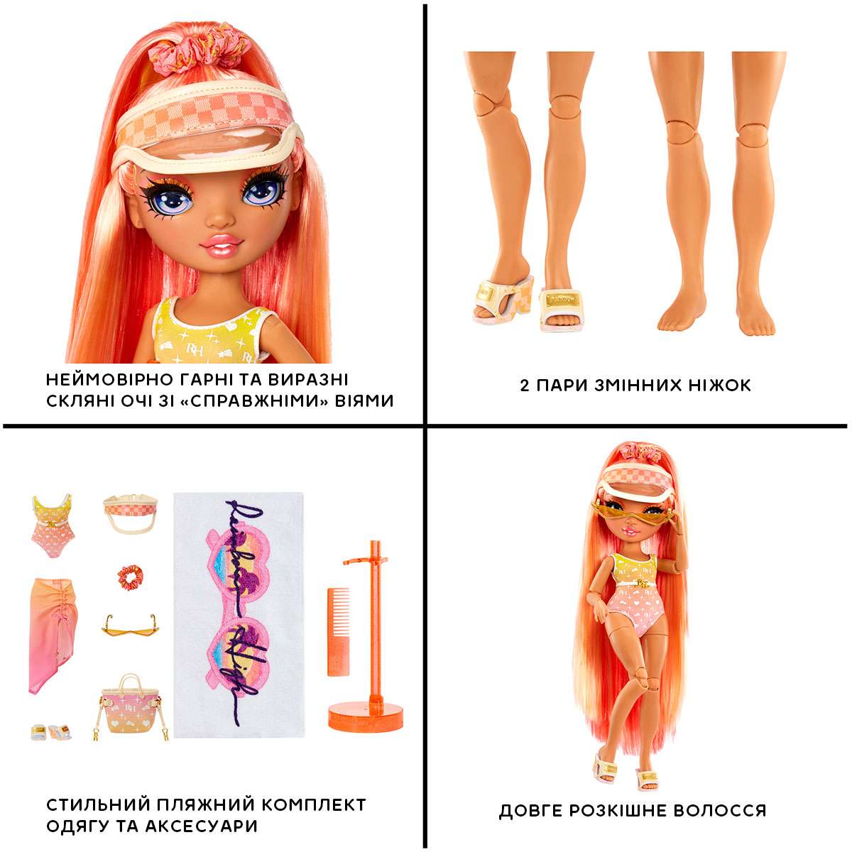 • у комплекті пляжні аксесуари: окуляри, сумка, рушник, пляжний капелюшок (можуть відрізнятися для кожної лялечки)