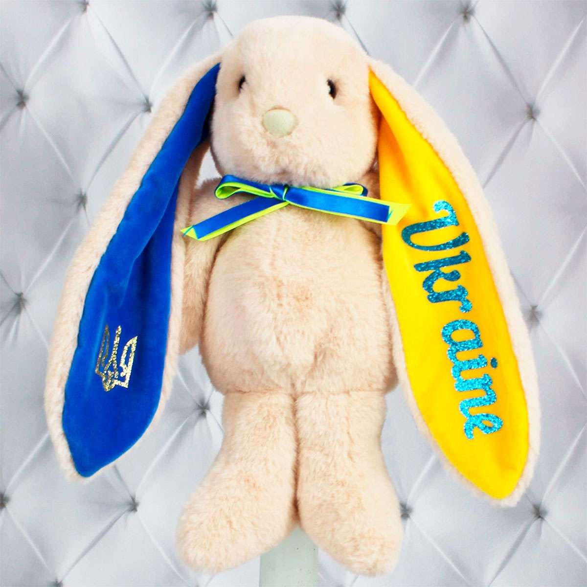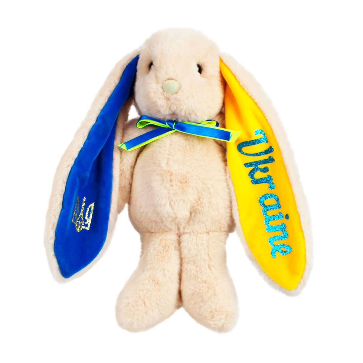 У м’якого зайчика-патріота вушка пофарбовані в кольори прапора України – жовтий і синій. Це чудовий подарунок для дорослих і маленьких українців!