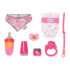 Чарівна пустушка з ремінцем, підгузок, баночка для крему, баночка для присипки, пляшечка, прорізувач