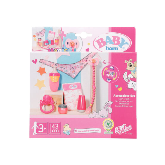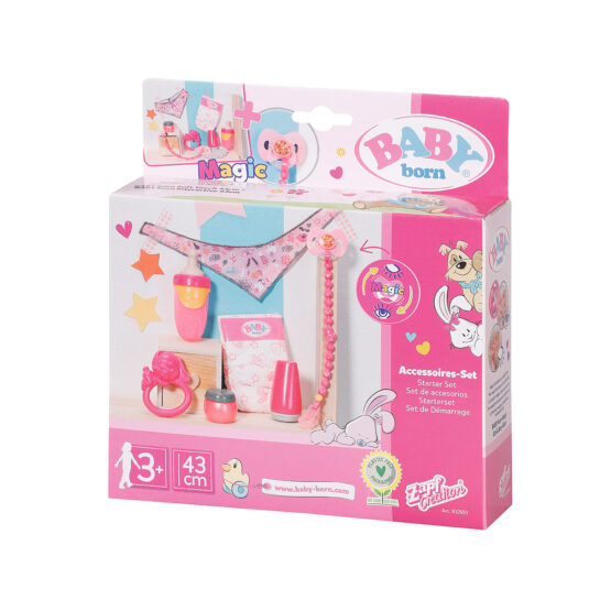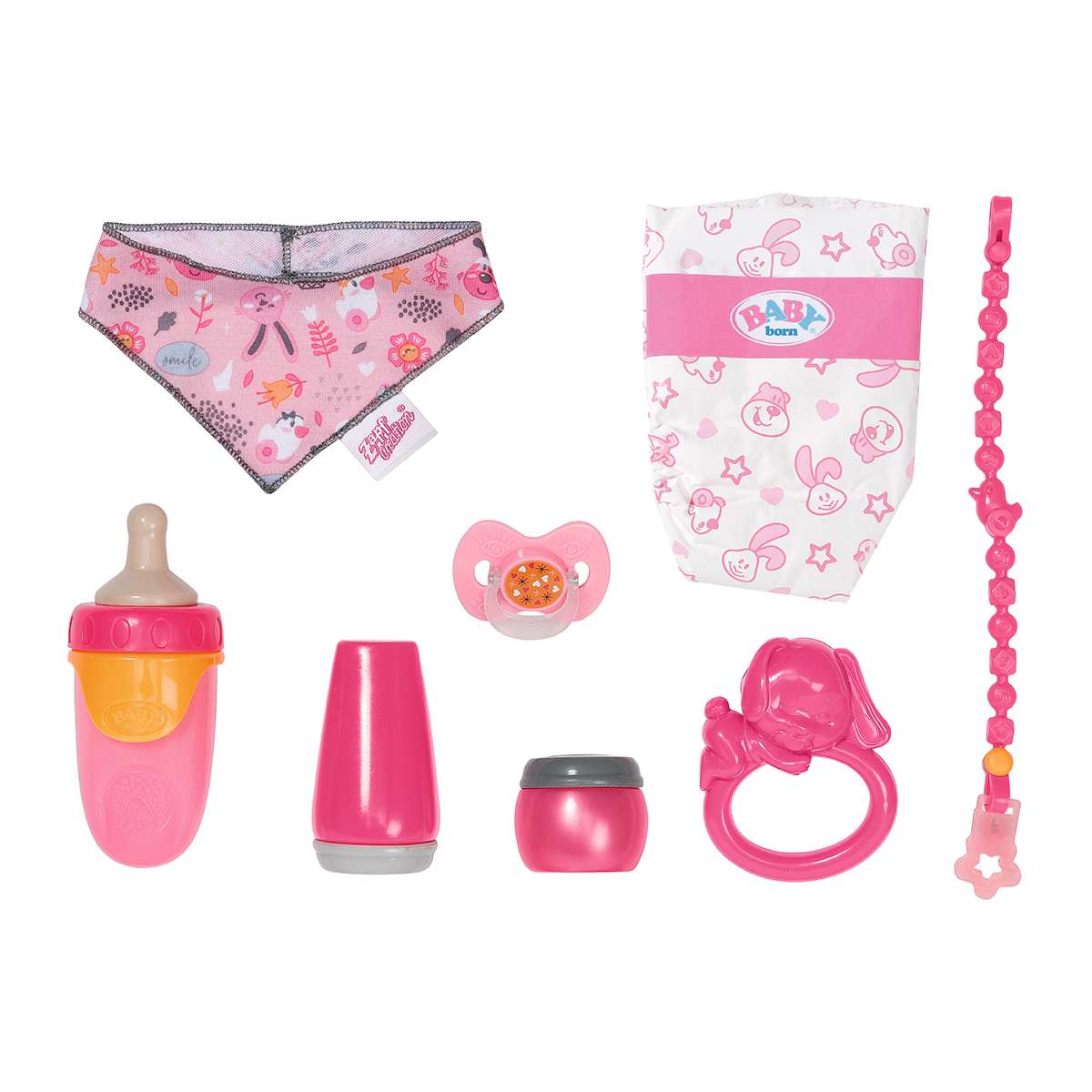 Набір аксесуарів для ляльки BABY BORN –  НІЖНА ТУРБОТА З ЧАРІВНОЮ ПУСТУШКОЮ містить все необхідне для догляду за маленькою лялечкою.