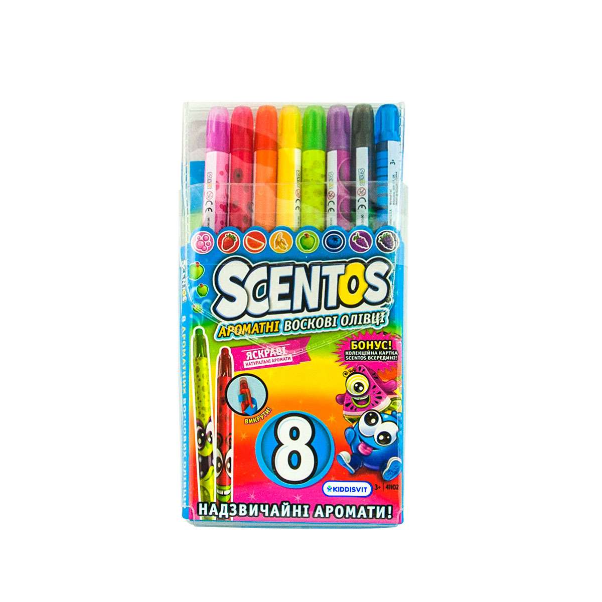 • 8 кольорових воскових олівців
