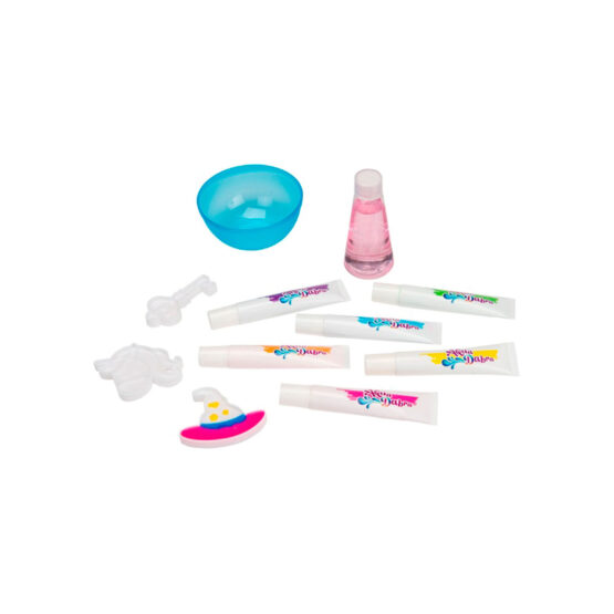 3 тюбика з фарбою, 1 колба з чарівною водою, 3 формочки, 1 мисочка для створення розчину.