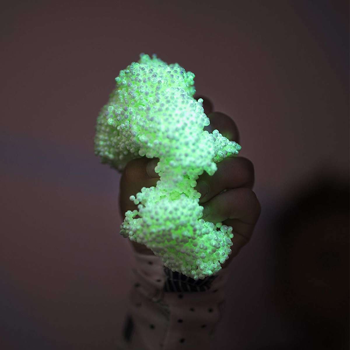 - 8 кольорів кулькового пластиліну, які світяться в темряві.