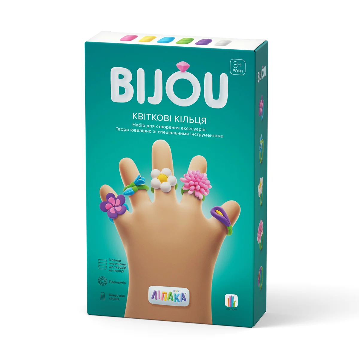 Набір пластиліну, що самостійно твердіє, ЛІПАКА – БІЖУТЕРІЯ: КВІТКОВІ КІЛЬЦЯ – розважить і малюків, і дорослих. За допомогою анімаційних інструкцій в додатку HEY CLAY, Ви зможете зліпити милі квіткові кільця. А завдяки компактним розмірам, набір зручно брати з собою. Пластилін твердіє на повітрі протягом 24 годин, після чого можна гратися створеними фігурками.