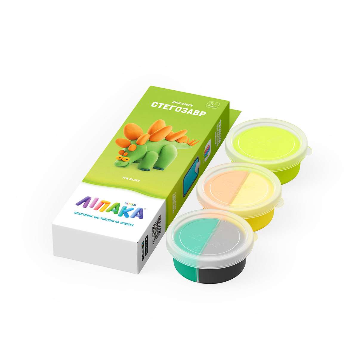 Набір пластиліну, що самостійно твердіє, ЛІПАКА – ДИНОЗАВРИ: СТЕГОЗАВР – розважить і малюків і дорослих. За допомогою анімаційних інструкцій в додатку HEY CLAY, Ви зможете зліпити прадавнього стегозавра. А завдяки компактним розмірам, набір зручно брати з собою. Пластилін твердіє на повітрі протягом 24 годин, після чого можна гратися створеними фігурками.