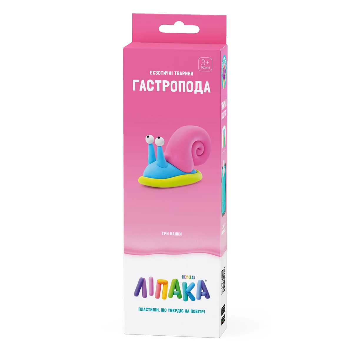 Набір пластиліну, що самостійно твердіє, ЛІПАКА – ЕКЗОТИЧНІ ТВАРИНИ: ГАСТРОПОДА – розважить і малюків і дорослих. За допомогою анімаційних інструкцій в застосунку HEY CLAY, Ви зможете зліпити кумедну гастроподу. А завдяки компактним розмірам, набір зручно брати з собою. Пластилін твердіє на повітрі протягом 24 годин, після чого можна гратися створеними фігурками.