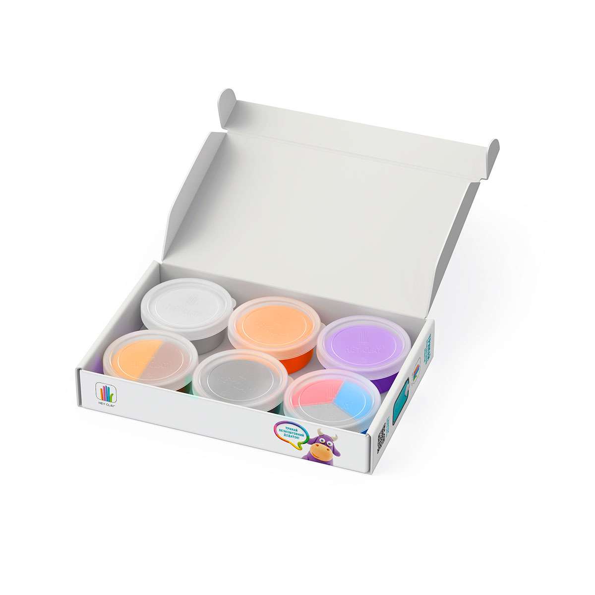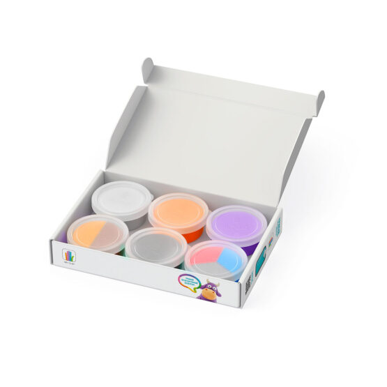 - В набір може входити до 12 різних кольорів (баночка може містити пластилін двох різних кольорів).