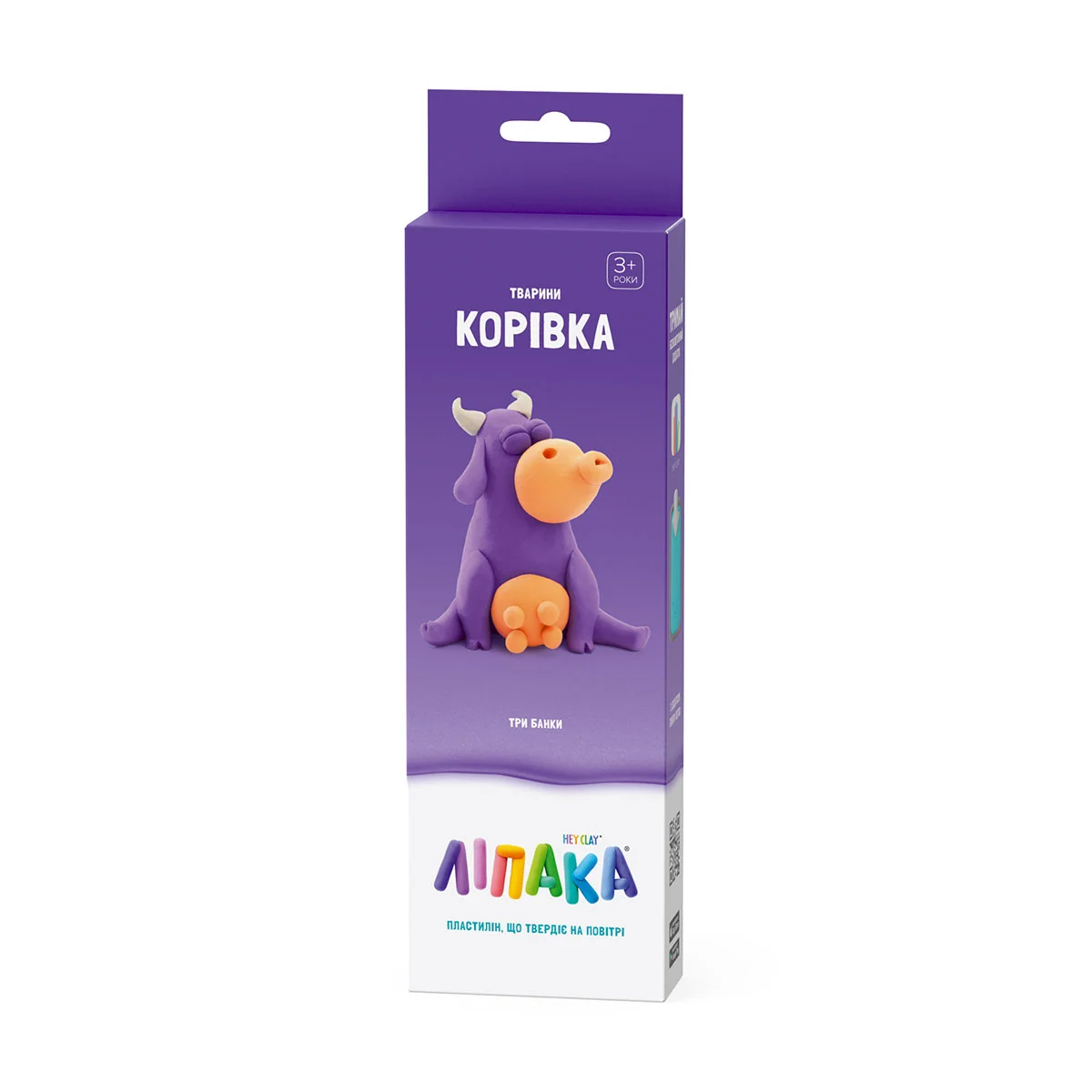 Набір пластиліну, що самостійно твердіє, ЛІПАКА – КОРІВКА – розважить і малюків і дорослих. За допомогою анімаційних інструкцій в додатку HEY CLAY, Ви зможете зліпити кумедну корівку. А завдяки компактним розмірам, набір зручно брати з собою. Пластилін твердіє на повітрі протягом 24 годин, після чого можна гратися створеними фігурками.