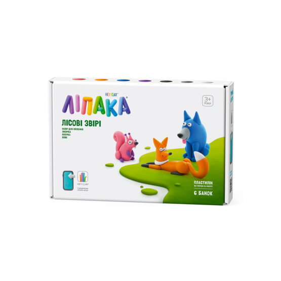 Набір пластиліну, що самостійно твердіє, ЛІПАКА – ВОВК, ЛИСИЧКА, БІЛОЧКА – розважить і малюків, і дорослих. За допомогою анімаційних інструкцій в додатку HEY CLAY, Ви зможете зліпити трьох кумедних тваринок. Пластилін твердіє на повітрі протягом 24 годин, після чого можна гратися створеними фігурками.
