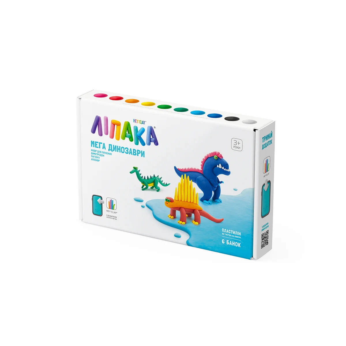 Набір пластиліну, що самостійно твердіє, ЛІПАКА – ДИМЕТРОДОН, АЛОЗАВР, ЛАГОЗУХ – розважить і малюків і дорослих. За допомогою анімаційних інструкцій в додатку HEY CLAY, Ви зможете зліпити трьох прадавніх динозаврів. Пластилін твердіє на повітрі протягом 24 годин, після чого можна гратися створеними фігурками.