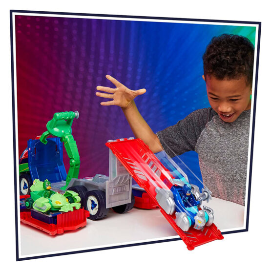 - Набір оснащений системою Hero ID. Може розпізнавати фігурки героїв PJ Masks від компанії Hasbro, сумісних з Hero ID, як героїв чи лиходіїв, і активувати звуки, характерні для персонажів