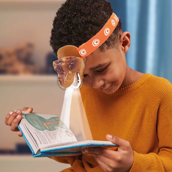 А щоб дитині було нестрашно в цій подорожі, їй обов’язково знадобиться налобний ліхтарик НЕБЕЗПЕЧНИЙ ТІ-РЕКС! З таким помічником будь-які складності під силу!